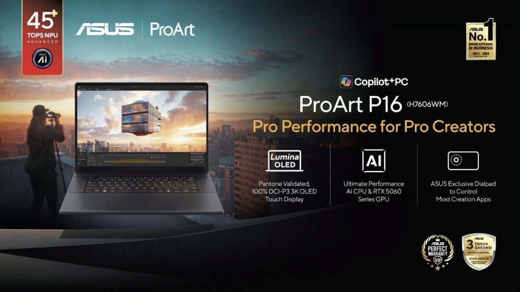 Dengan kombinasi performa AI, layar profesional, dan dukungan purna jual yang unggul, ASUS ProArt P16 menegaskan komitmen ASUS dalam menghadirkan perangkat terbaik bagi kreator yang menuntut performa dan keandalan tinggi.