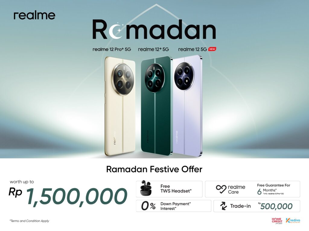 Untuk memberikan kesempatan kepada para konsumen untuk merasakan pengalaman terbaik, realme juga menawarkan promo menarik melalui Ramadan Festive Offer, di mana setiap pembelian realme 12 Series 5G akan mendapatkan berbagai keuntungan menarik seperti hadiah gratis dan kemudahan pembayaran.