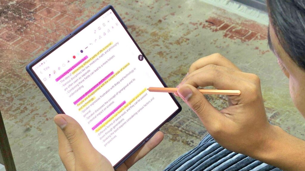 BagusTech – Galaxy Z Fold6 membawa pengalaman membaca dan bekerja ke level yang lebih tinggi dengan fitur highlight yang didukung oleh S Pen.