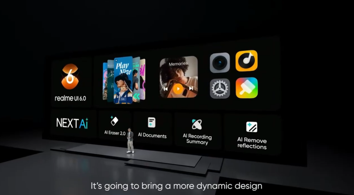 Dengan realme UI 6.0, pengguna akan mendapatkan aplikasi “Memories” yang memungkinkan pengelolaan foto dan video secara otomatis, termasuk pembuatan album kenangan berbasis AI. Antarmuka juga dirancang lebih dinamis dengan desain yang lebih mengalir, menghadirkan pengalaman yang lebih intuitif dan mudah digunakan. - Fluid Design dan Effortless AI