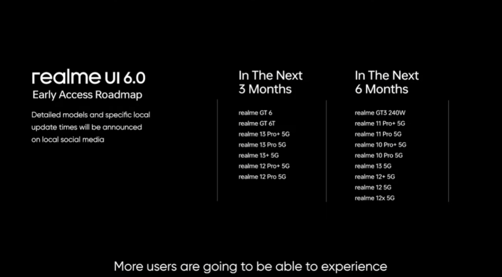 Jadwal pembaruan dan detail model spesifik untuk tiap wilayah akan diumumkan lebih lanjut melalui akun media sosial resmi realme. Pembaruan ini akan digulirkan secara bertahap sesuai dengan roadmap yang telah ditetapkan.