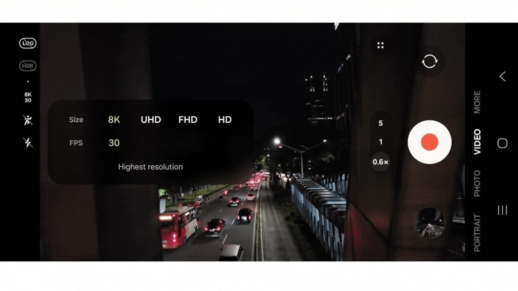 Selain itu, Galaxy S25 juga mendukung 10-bit HDR video recording, yang meningkatkan dynamic range empat kali lebih luas dibandingkan dengan 8-bit SDR. Teknologi ini memastikan warna dalam video tetap akurat dan detail tetap terjaga, bahkan dalam kondisi pencahayaan yang sulit.