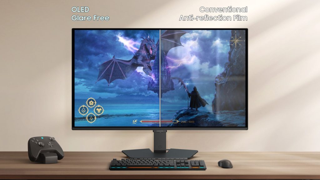 Selain performa, Samsung turut menggarap aspek kenyamanan dan ketahanan panel—dua isu krusial pada monitor OLED—melalui lapisan anti‑silau dan algoritma perlindungan layar.