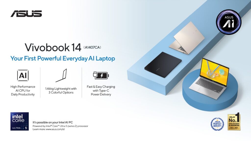 Jika Anda mencari laptop AI dengan performa tinggi, desain stylish, dan daya tahan teruji, ASUS Vivobook 14 (A1407CA) adalah salah satu opsi terbaik di kelasnya.