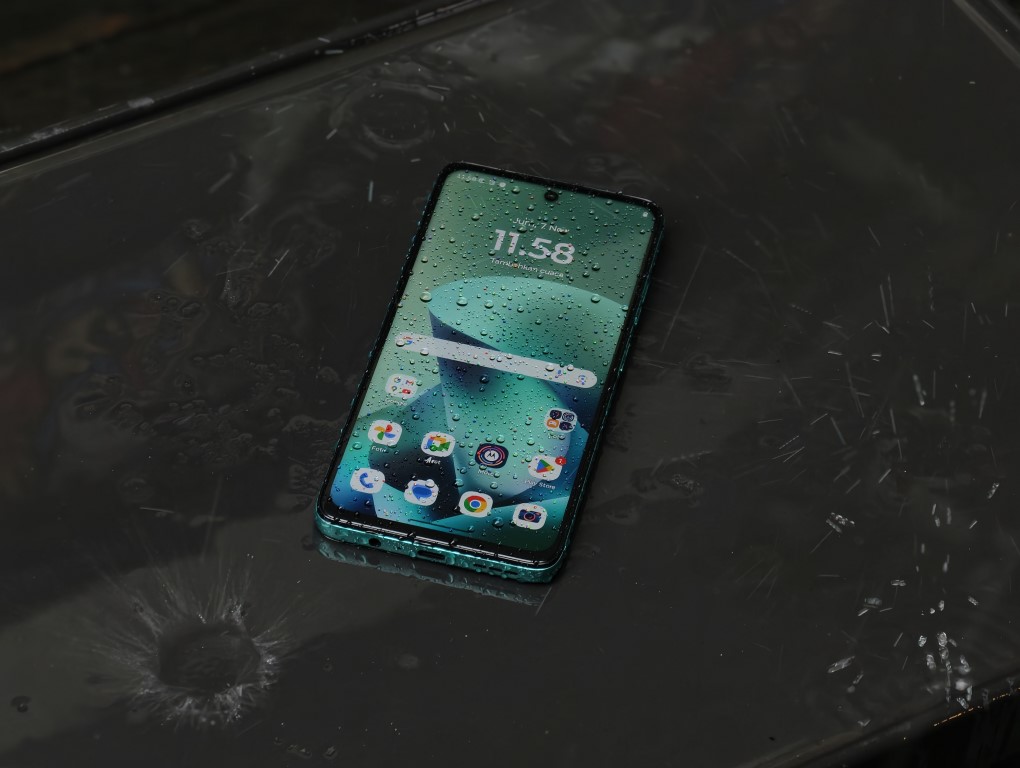 Dari sisi desain, Motorola memilih pendekatan yang tangguh sekaligus premium. Gorilla Glass 7i menjaga layar dari benturan dan goresan, sementara sertifikasi MIL-STD-810H memastikan perangkat tetap kuat menghadapi guncangan, cuaca ekstrem, atau jatuh tidak sengaja. Rating IP64 menambah ketahanan terhadap debu dan cipratan air. Bagian belakang berlapis vegan leather Pantone™ memberikan tampilan stylish sekaligus nyaman digenggam.