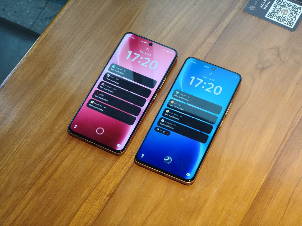 Kedua varian memiliki layar identik berukuran 6,77 inci AMOLED dengan dukungan 1 miliar warna, refresh rate 120Hz, dan resolusi 1080 x 2392 piksel. Dari segi dimensi, keduanya sama-sama tipis dengan ukuran 163,8 x 76,3 x 7,6 mm dan bobot 194 gram. Pilihan warna pun identik, yakni biru, hitam, dan merah muda, menjadikan keduanya tetap stylish.