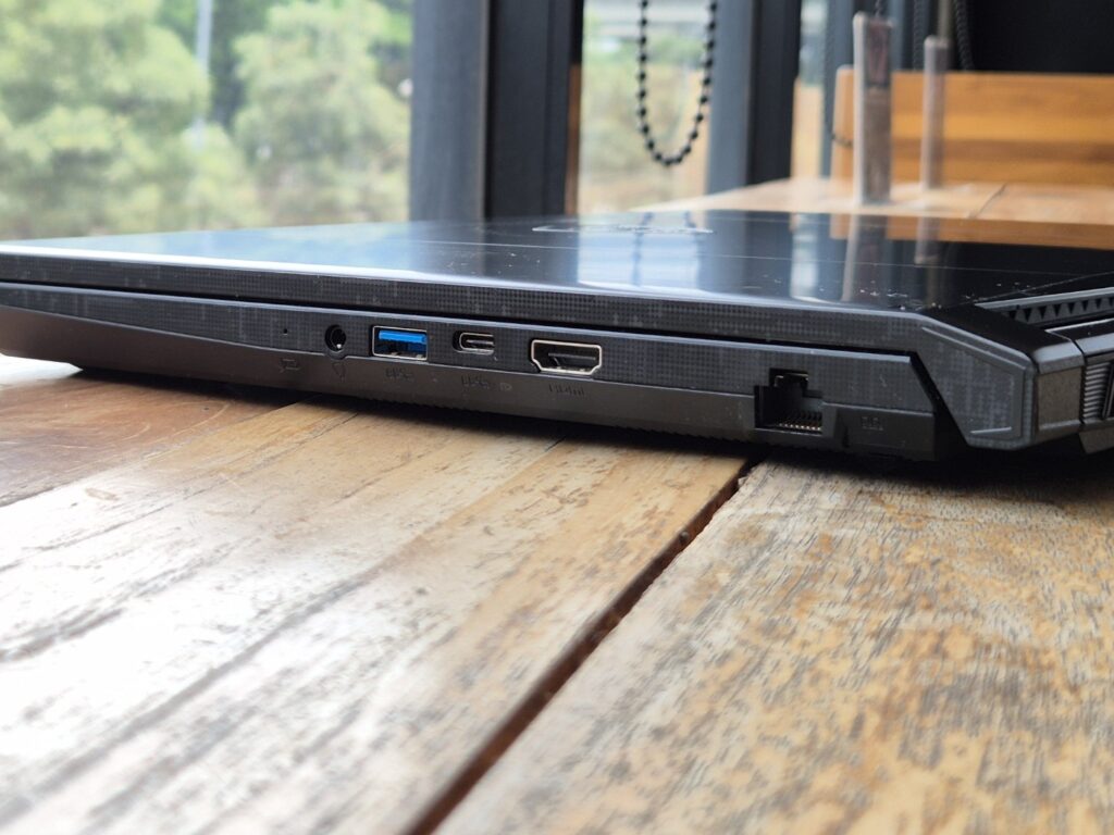 Port yang tersedia cukup memadai untuk kebutuhan gaming dan produktivitas, tetapi kurang ideal bagi kreator konten yang membutuhkan Thunderbolt atau card reader untuk transfer data dengan lebih cepat.