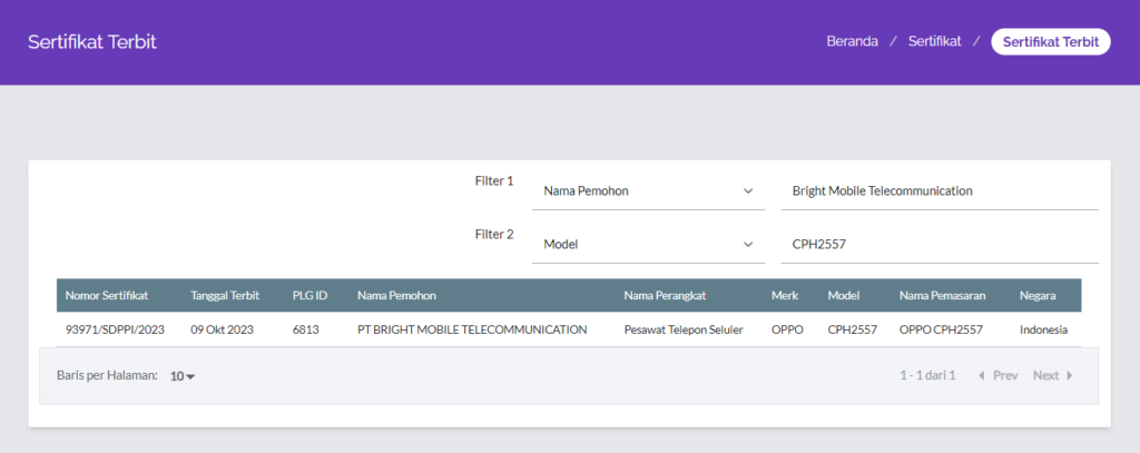 Dengan nomor model CPH2557, perangkat ini telah meraih sertifikasi dari Postel, membuka jalan untuk dipasarkan di Indonesia.