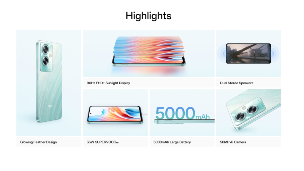 Fitur yang mungkin termasuk di antaranya adalah charger 33W SUPERVOOC, baterai besar 5.000mAh dengan Battery Health Engine, RAM 8GB yang dapat diperluas hingga 8GB, dan kamera utama 50MP yang dilengkapi kecerdasan buatan.