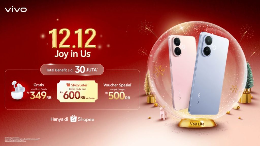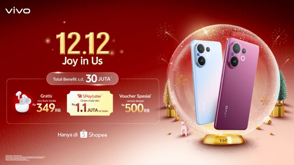 BagusTech – vivo kembali memanfaatkan momentum belanja terbesar di akhir tahun dengan menghadirkan promo 12.12 untuk V60 Series. Melalui kampanye Joy in Us, vivo menempatkan V60 dan V60 Lite sebagai perangkat utama untuk konsumen yang ingin mengabadikan momen liburan tanpa hambatan. Pendekatan ini menegaskan komitmen vivo dalam menghadirkan smartphone yang bukan hanya kuat di spesifikasi, tetapi juga relevan dengan gaya hidup pengguna.